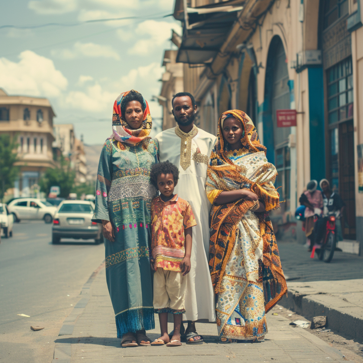 Traditional Eritrean dress, including the "zurias" for women and "shida" for men, symbolizes cultural heritage, identity, and traditional fashion.
