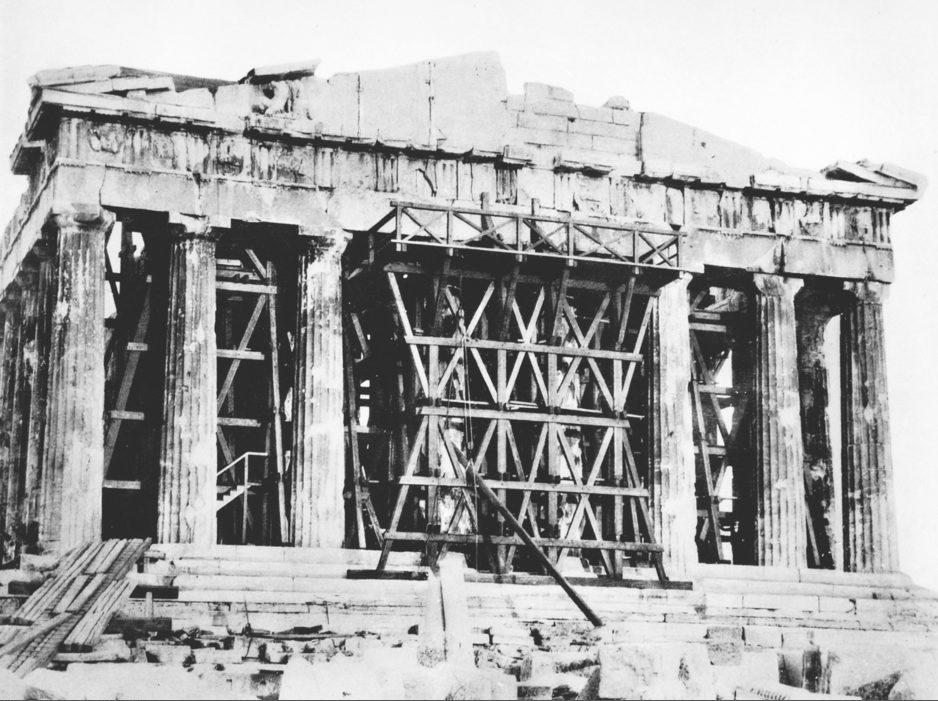 Работы по реставрации западного фасада Парфенона