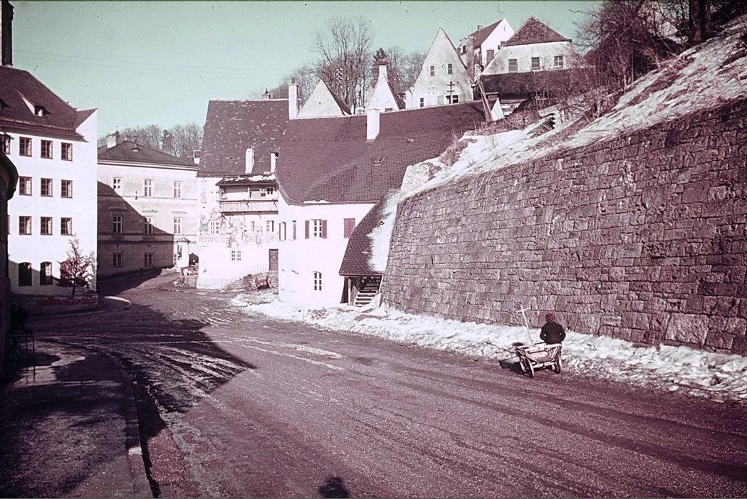 Landsberg am Lech. Neue Berrgstrasse. Blick nach Norden zur Alten Bergstrasse