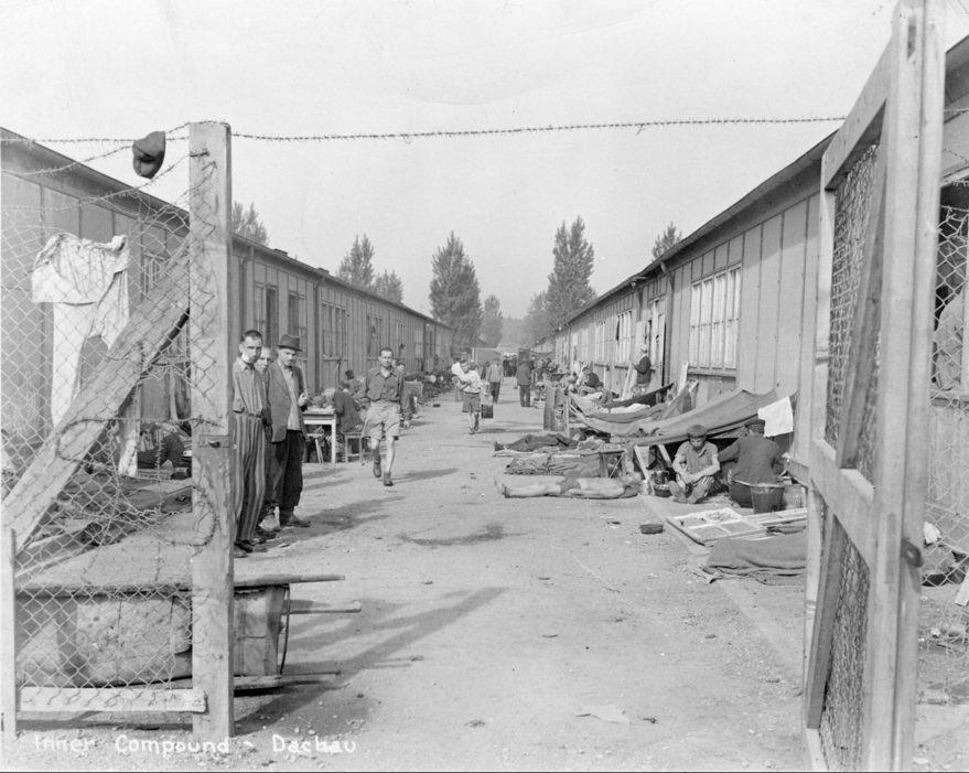 Die entlassenen Häftlinge des KZ Dachau in der Nähe der Lagerkaserne