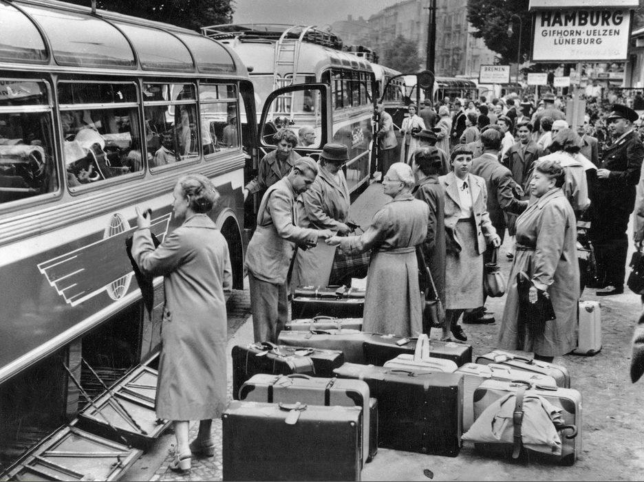 Reisende zu Ferienbeginn an der Busabfahrtsstelle am Stuttgarter Platz