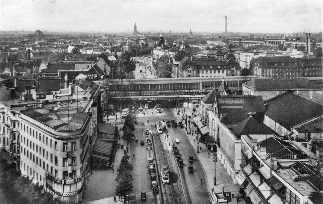 Blick von der Kaiser-Wilhelm-Gedächtnis Kirche auf die Hardenbergstrasse und den Bahnhof Zoo