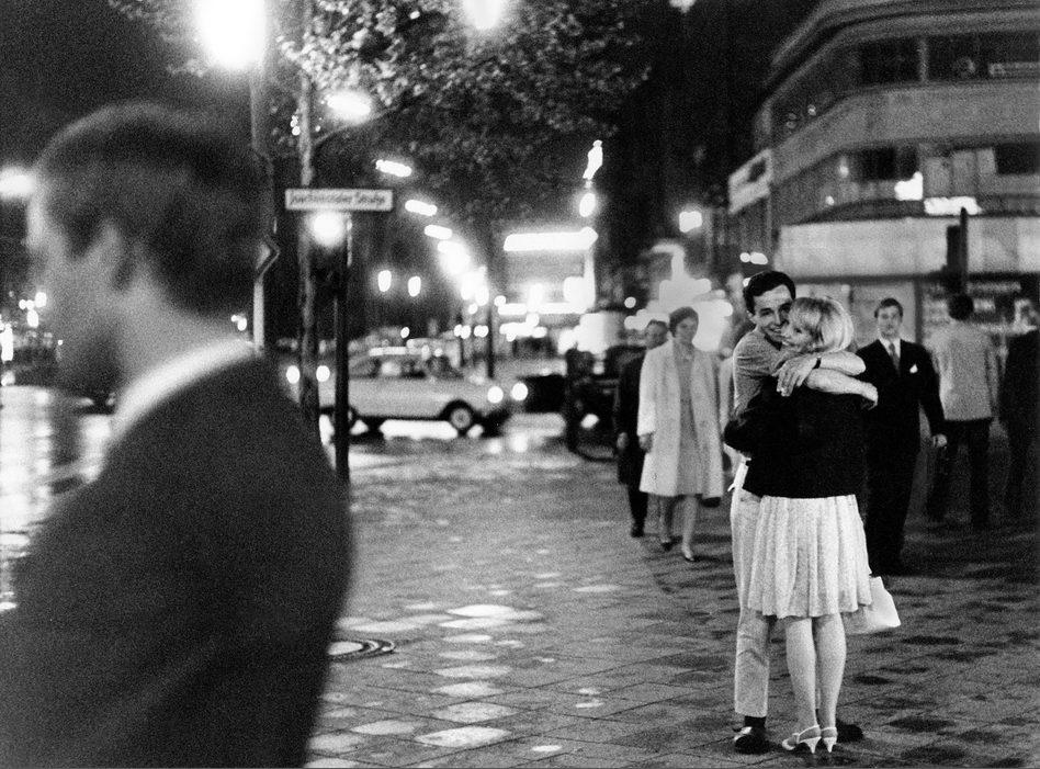 Ein Liebespaar umarmt sich auf der Strasse Berlin, Kurfürstendamm, Ecke Joachimsthaler Strasse