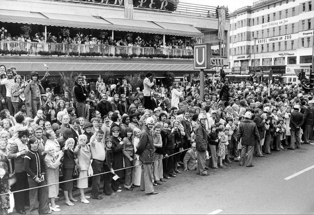 Berliner warten am Cafe Kranzler auf die Ankunft des U.S.-Präsidenten