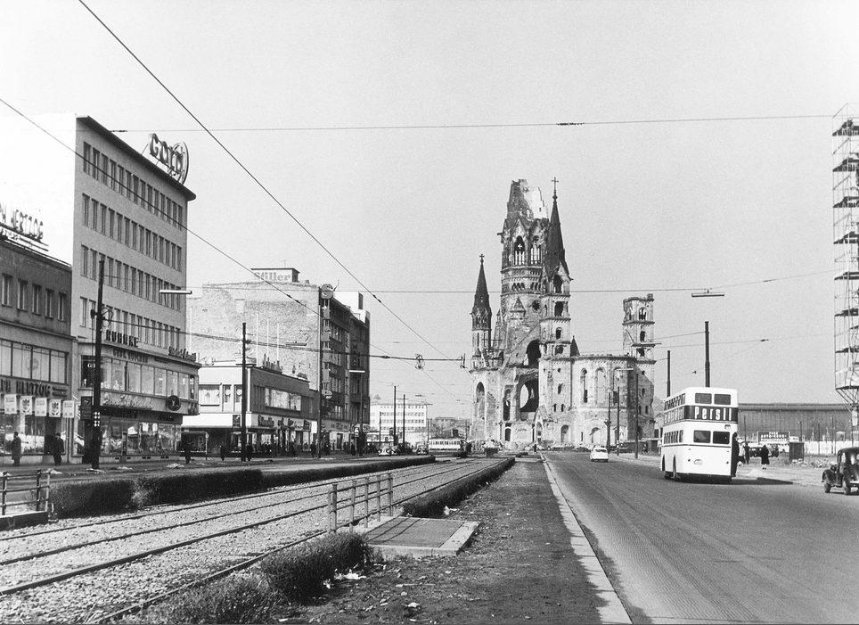Blick von der Tauentzienstrasse auf die Ruine der Gedächtniskirche