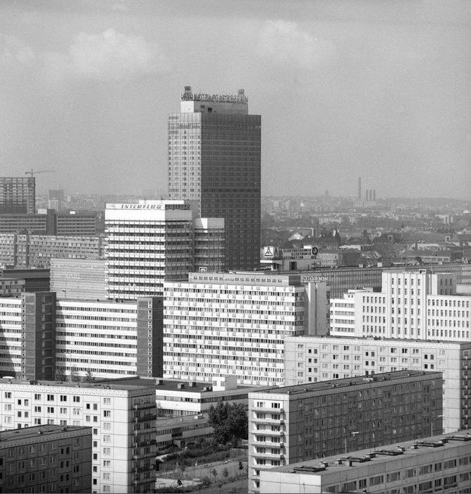 Blick über Neubauten im Zentrum von Ostberlin