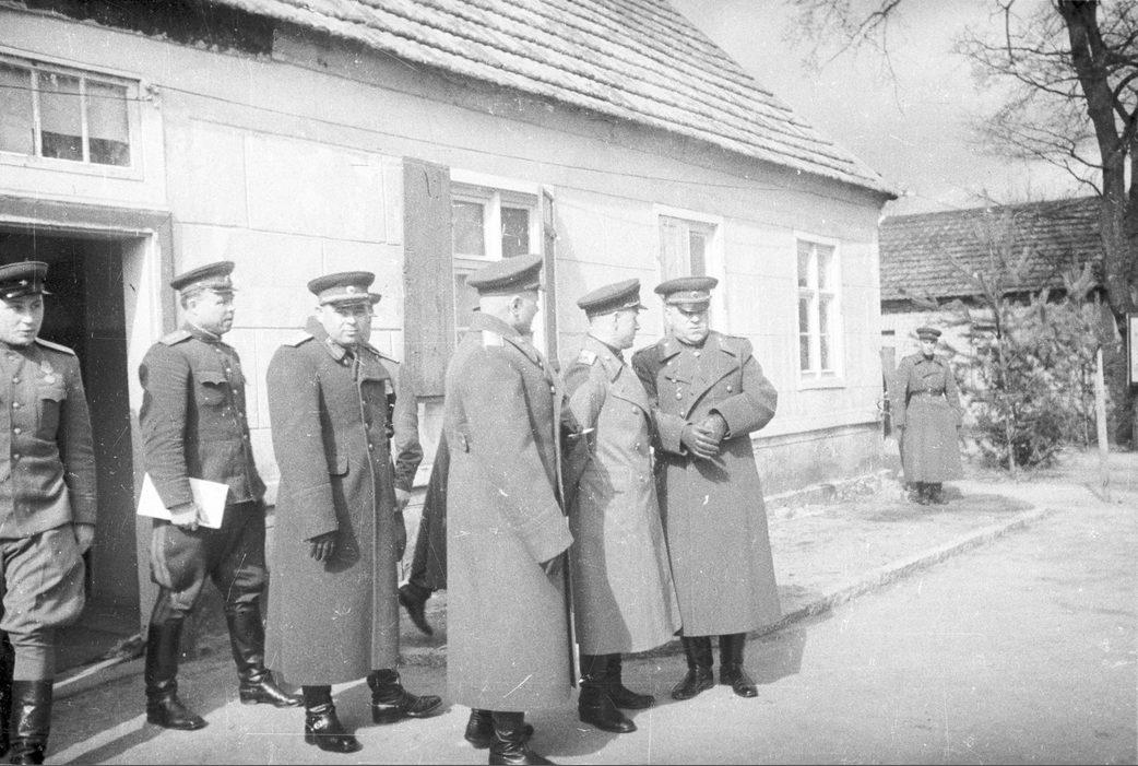 Маршал Советского Союза Г.К. Жуков с высшими советскими офицерами в Карлсхорсте