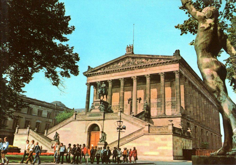 Ost-Berlin. Nationalgalerie mit Reiterstandbild Friedrich Wilhelm IV