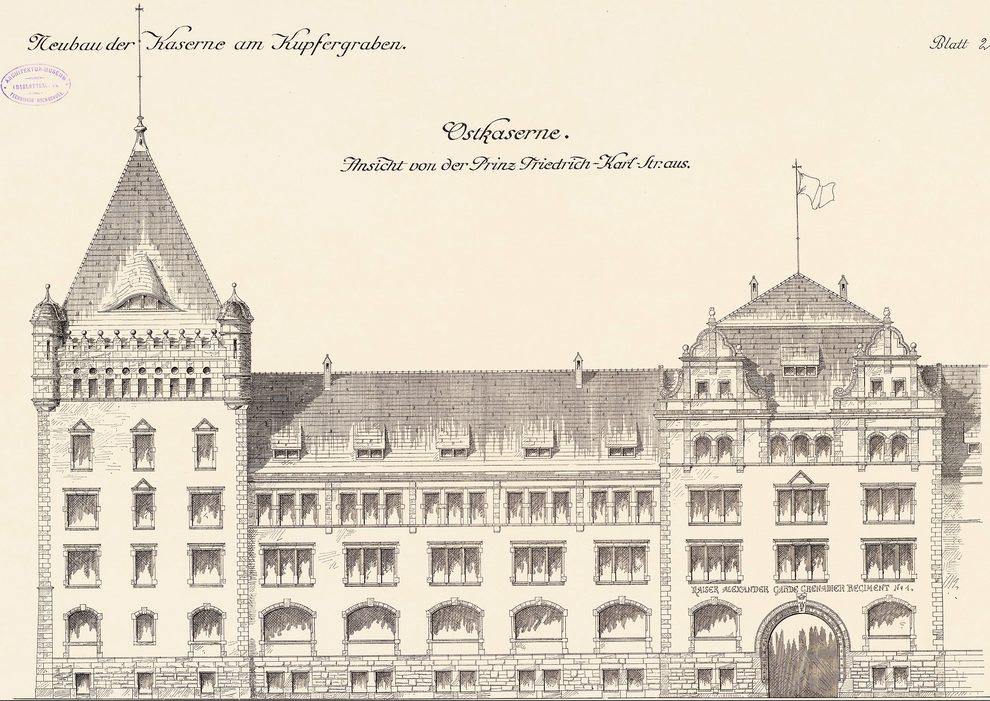 Prinz-Friedrich-Karl-Straße: Kaserne Kaiser-Alexander-Gardegrenadier-Regiment (Ostkaserne)