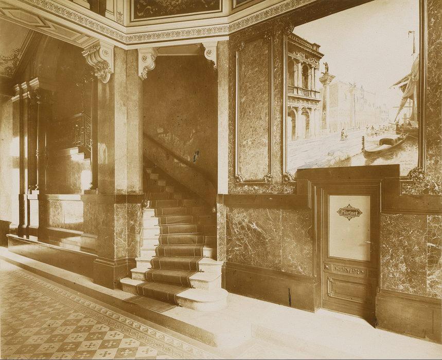 Taubenstraße 44/45: Wohnhaus Heinrich Keibel II (Durchfahrt zum Hof mit Treppenhaus und Pförtnertür)