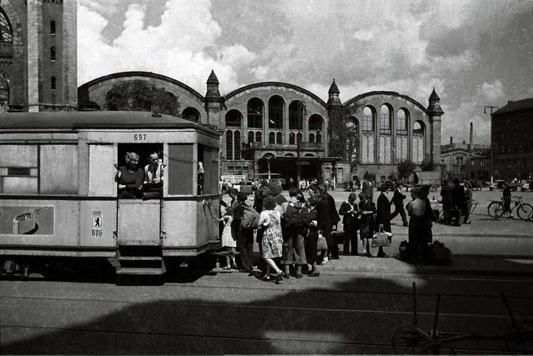 Straßenbahnhaltestelle der Linie 44 in der Invalidenstraße am Stettiner Bahnhof, sowjetischer Sektor
