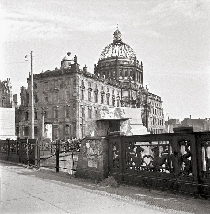 The bombed Berliner Schloß, seen from the Schloßbrücke