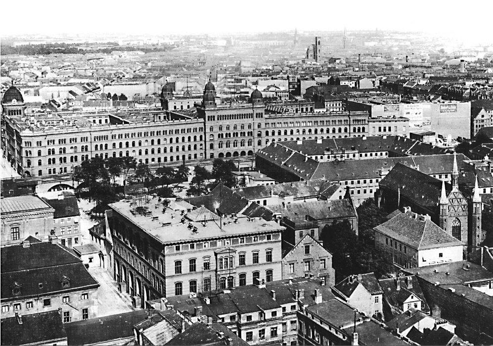 Blick vom Roten Rathaus auf den Gesamtkomplex zwischen Kloster- und Neuer Friedrichstraße (Littenstraße)
