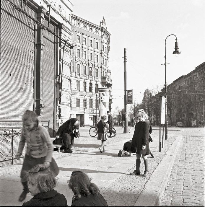Children playing on the street at the Rathenower Straße, at the corner to Perleberger Straße