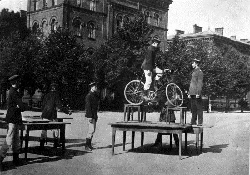 Preußische Hauptkadettenanstalt: Kadetten üben das Balancieren mit dem Fahrrad