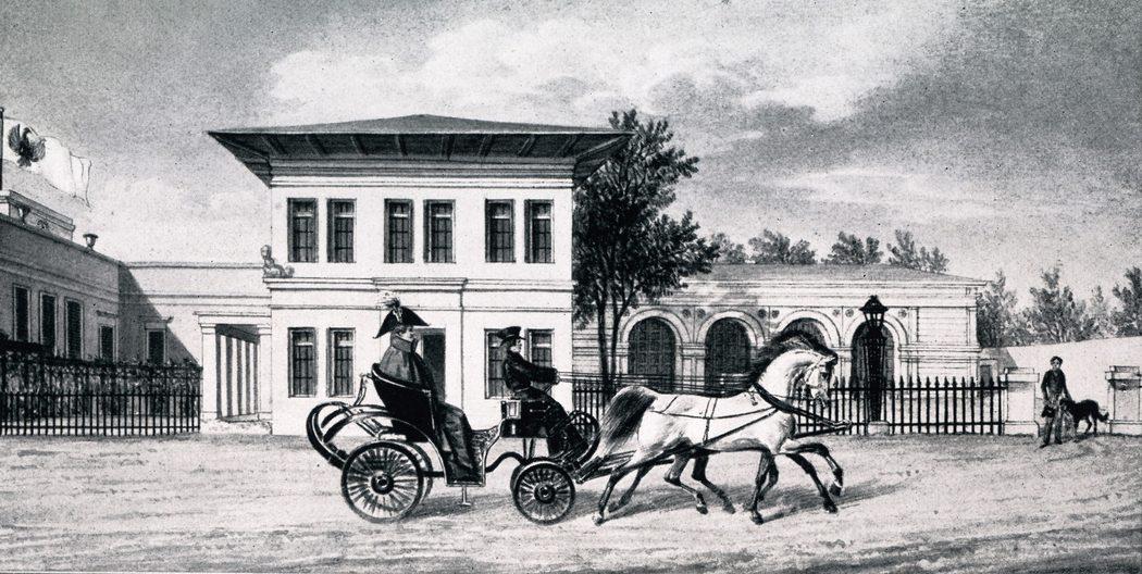 Prinz Carl ion Kutsche vor dem Remisenhof in Klein-Glienicke