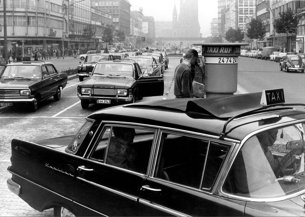 Eine Schlange wartender Taxen am Taxistand auf der Tauentzienstrasse