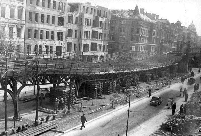 Bombenschäden an der Hochbahn zwischen Nollendorfplatz und Bülowstraße