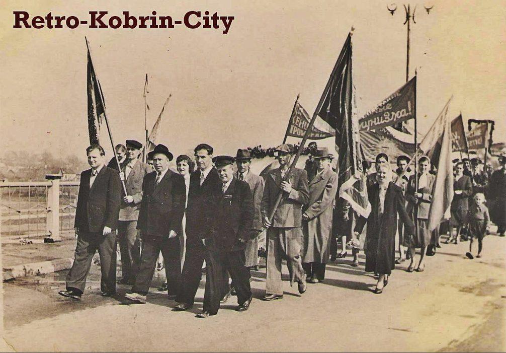 Кобрин. Колона демонстрантов на старом мосту через Мухавец