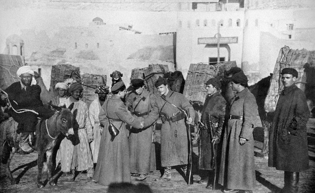 Курьеры-красноармейцы у стен Арка перед отправкой в Хиву