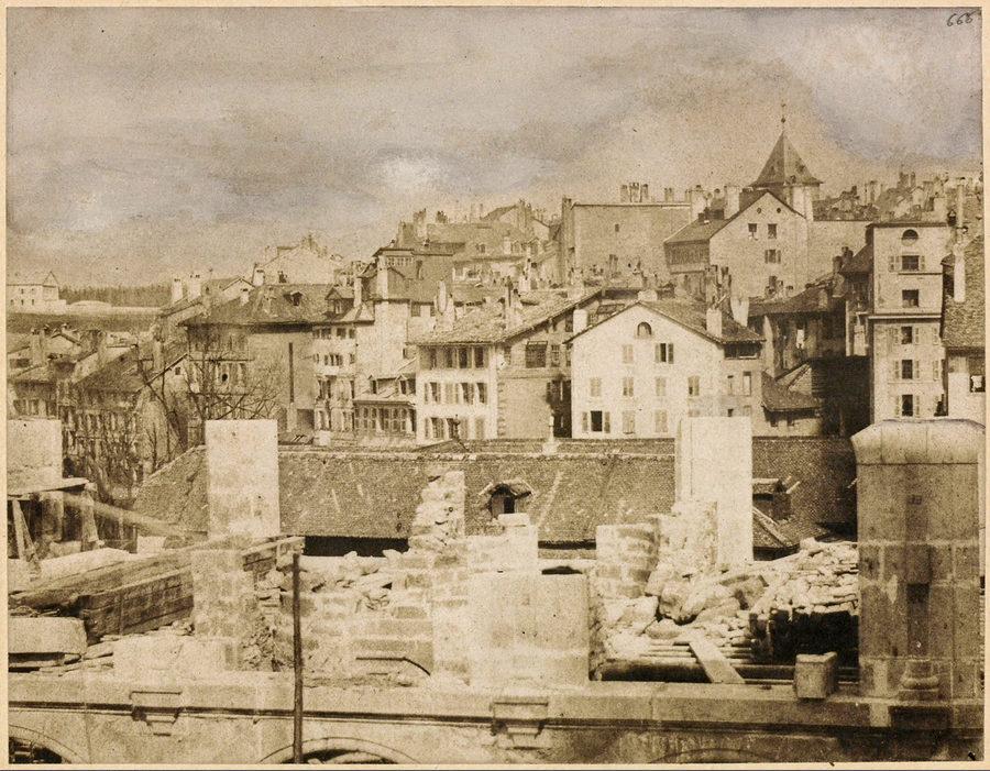 En direction du Seujet pendant la surélévation du marché couvert de Bel-Air