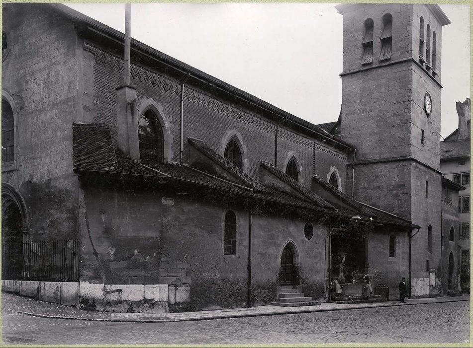 Rues des Terreaux-du-Temple et du Temple: façade sud du temple de Saint-Gervais (1901)