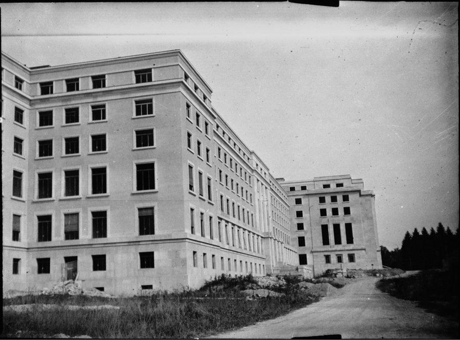 Vue générale du nouveau Palais des Nations presque terminé