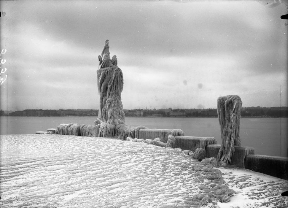 Cologny, le monument du port Noir sous la glace