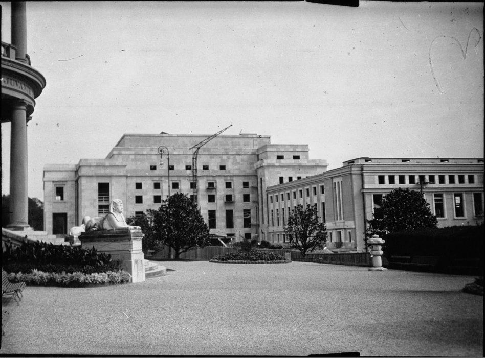 Vue générale du nouveau Palais des Nations presque terminé