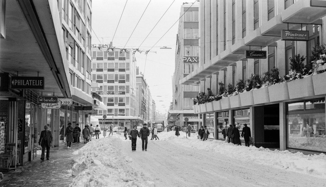 La Rue du Rhône sous la neige
