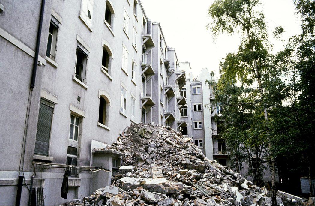 Démolition de l'hôtel La Résidence, route de Florissant