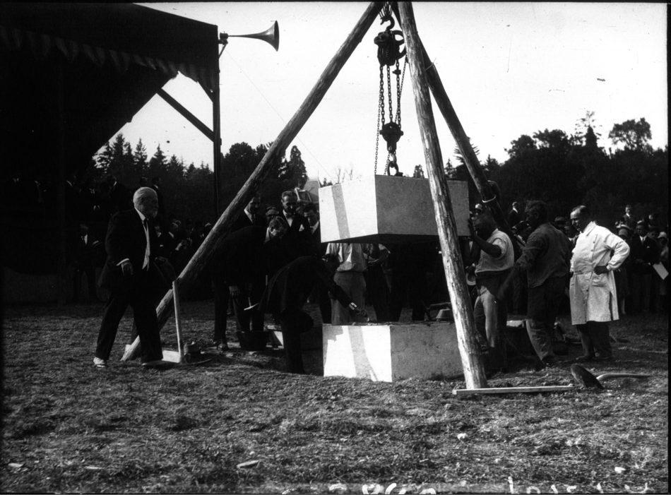 Pose de la première pierre du Palais des Nations par M. Guerrero, président de la S.D.N