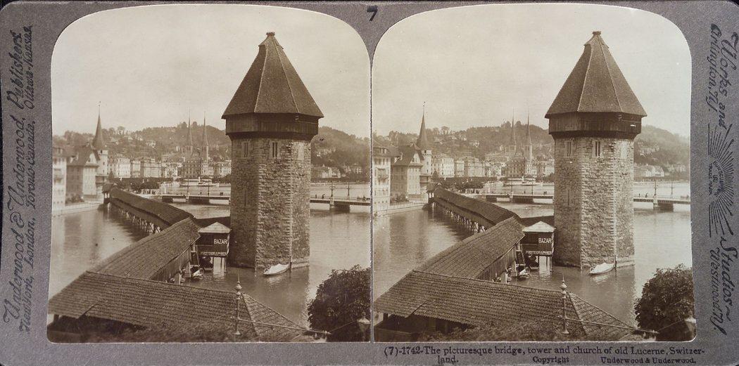 Kapellbrücke und Wasserturm (Stereofoto)