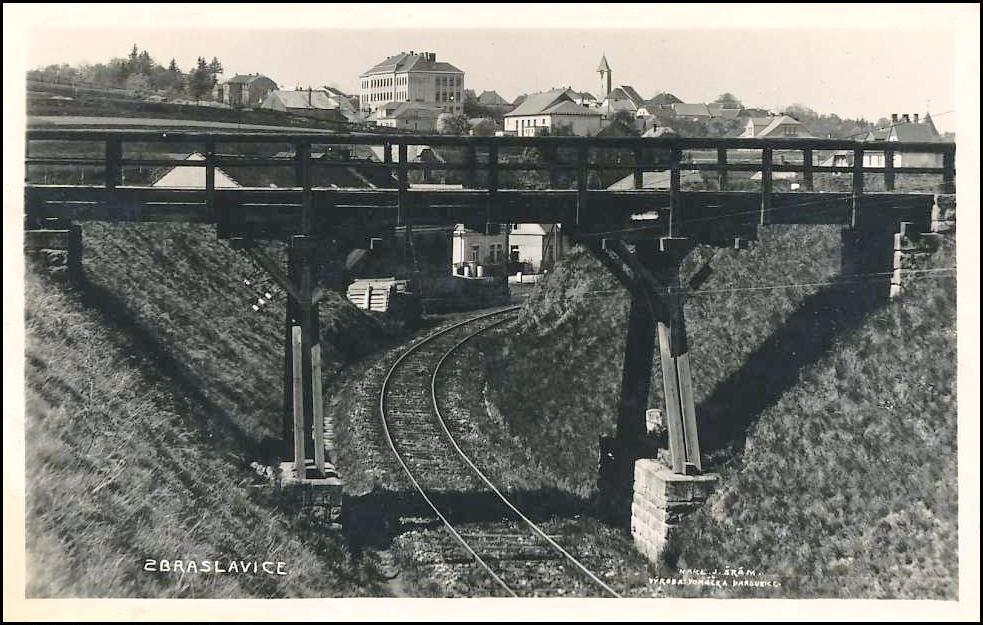 Pohled od mostu přes trať na Zbraslavice