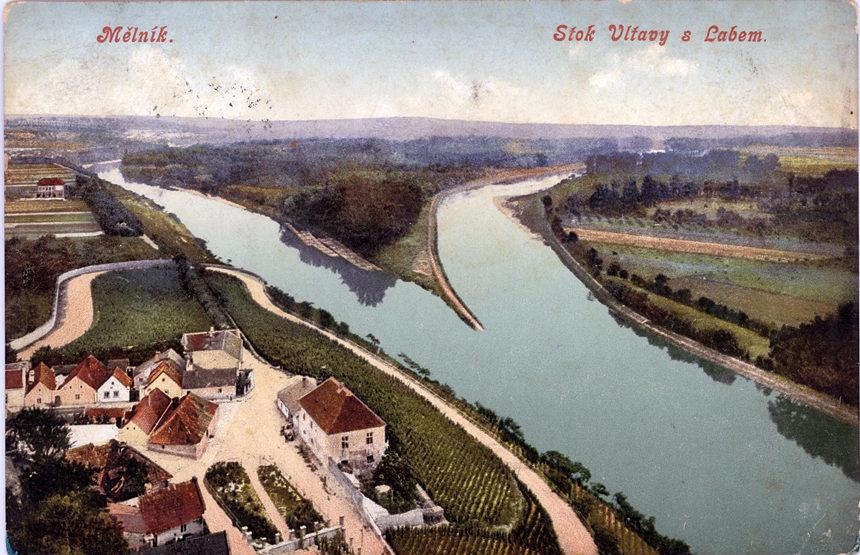 Mělník. Soutok Labe (vlevo) a Vltavy (vpravo)