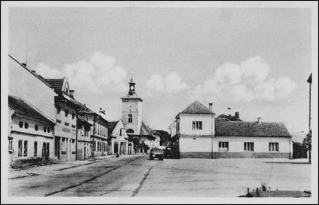 Veltrusy. Pohled z náměstí ke kostelu