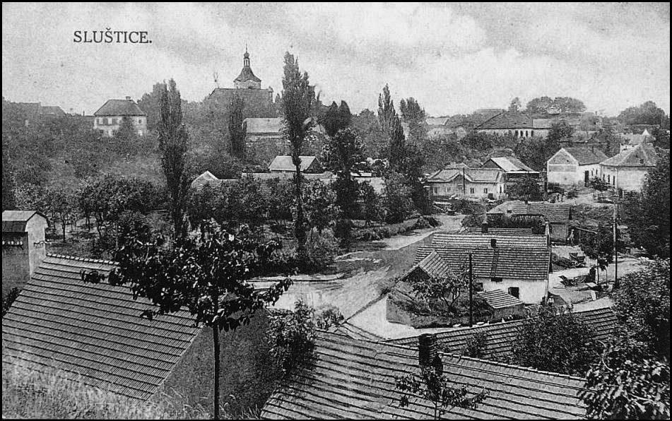 Sluštice, Pohled ke kostelu