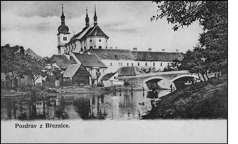 Březnice. Pohled přes Skalici na klášter a kostel