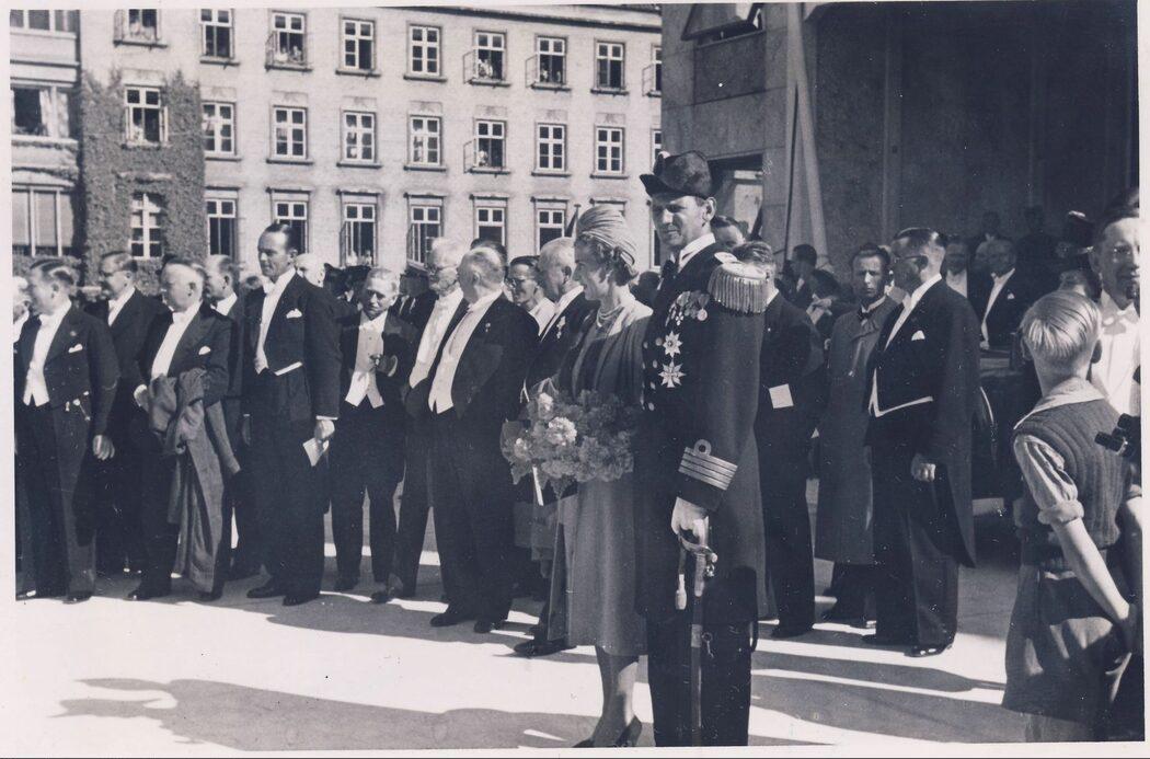 Kronprins Frederik og Kronprinsesse Ingrid foran Rådhus