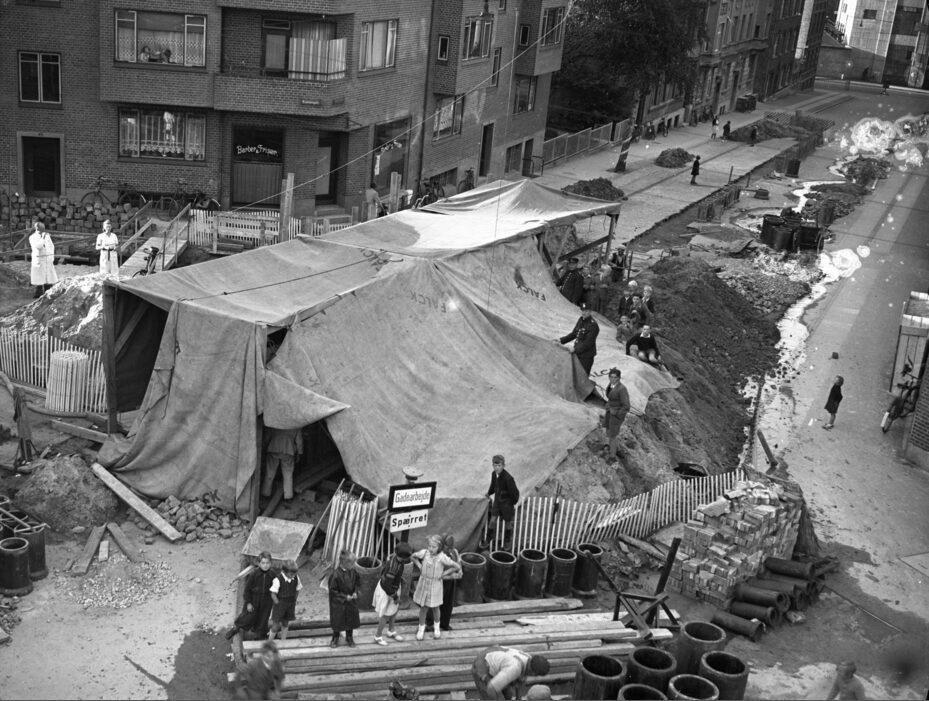 Vejarbejde Bramersgade / Marselisborg Allé i telt så der kan arbejdes om aftenen