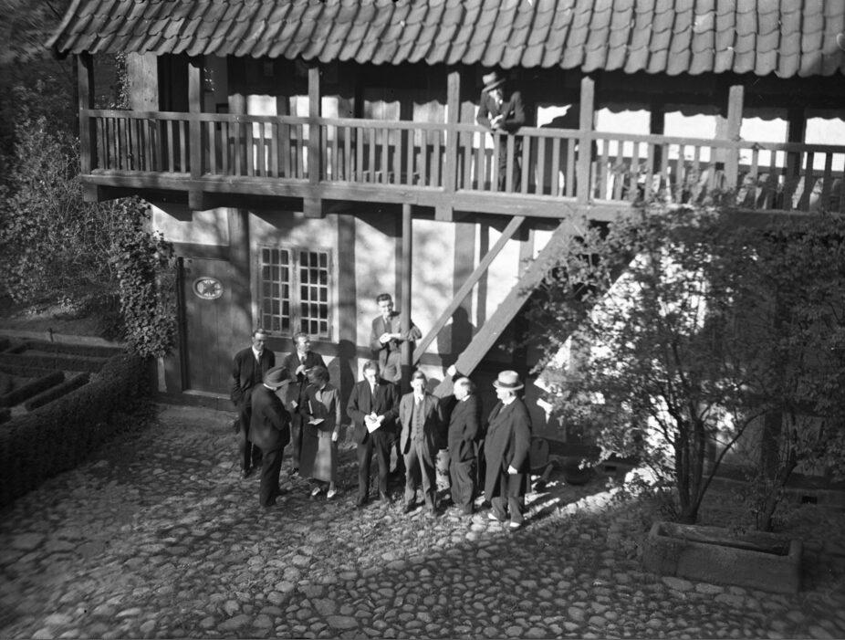 Gæster i Borgmestergaardens baggård i Den Gamle By
