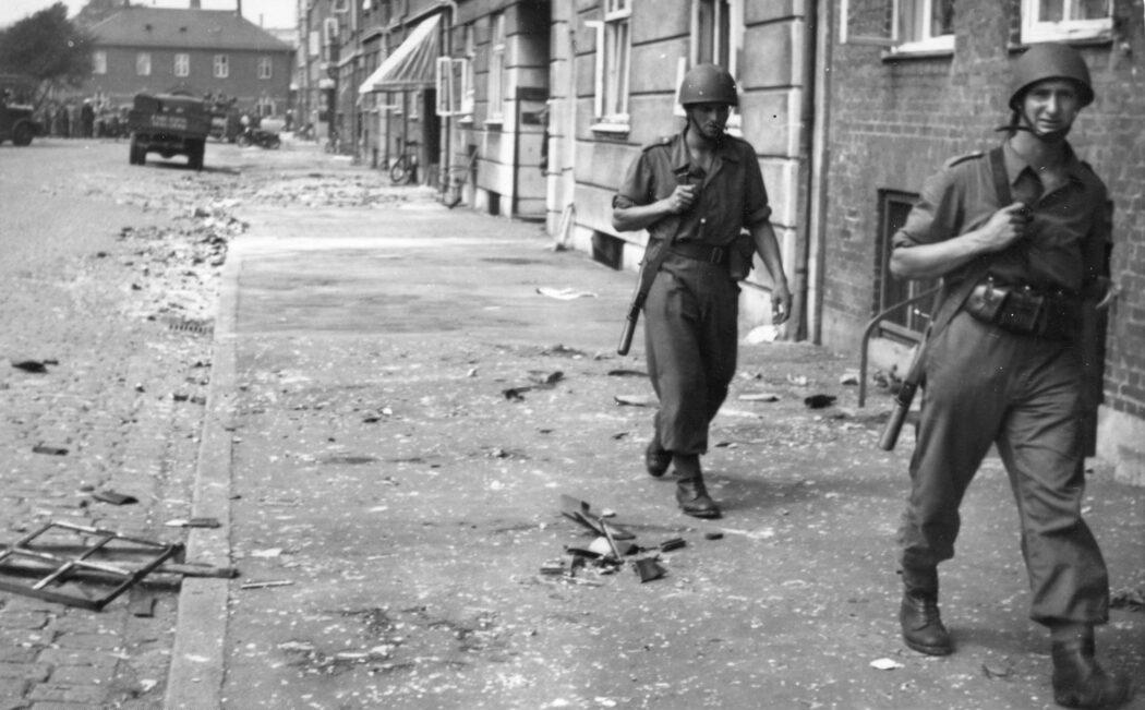Soldater på Skovgaardsgade, set mod Hammelbanegården