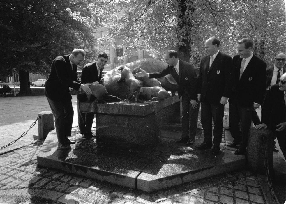 Rådhuspladsen. Studentersangere ved Grisebrønden