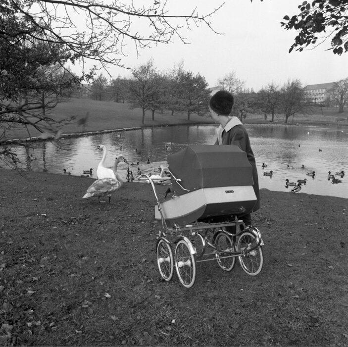 Barn ser på svaner i Universitetsparken