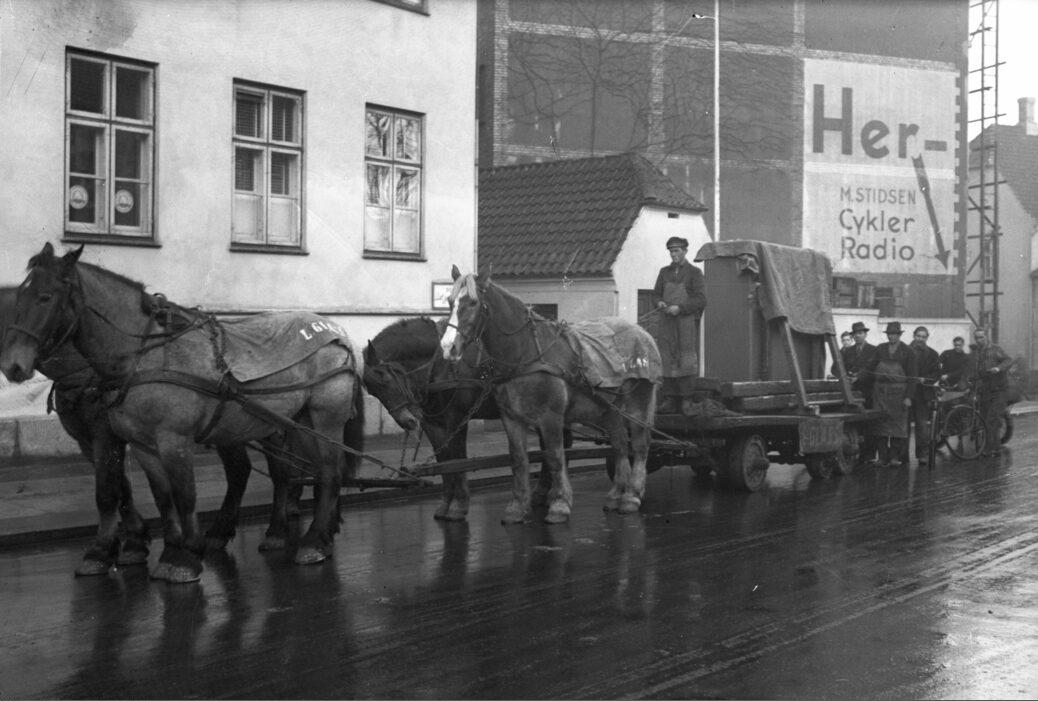 Handelsbanken transport af boxdør med hestevogn