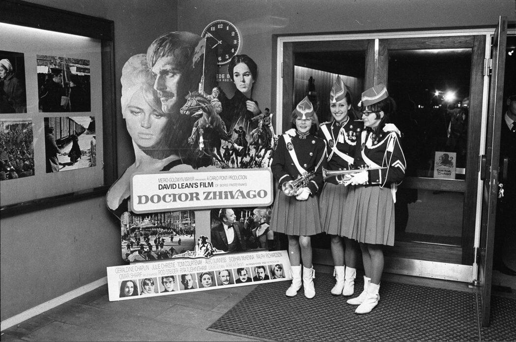 Jærgergårdsgade. Folketeatret. 3 piger fra pigegarden omkring plakaten for ”Dr. Zivago”