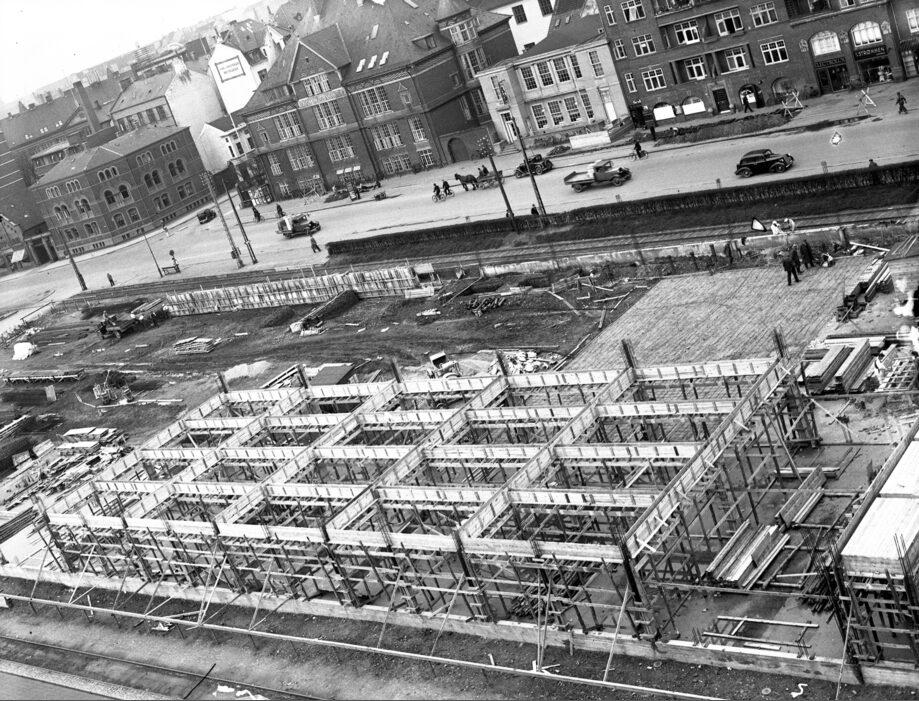 Byggeriet af Aarhus Motorkompagni overfor Katedralskolen
