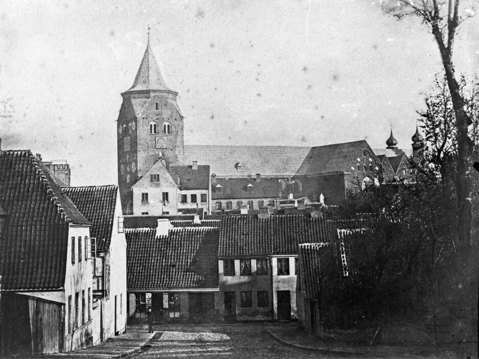 Udsigt fra Søndergade over Fiskergade mod Aarhus Domkirke