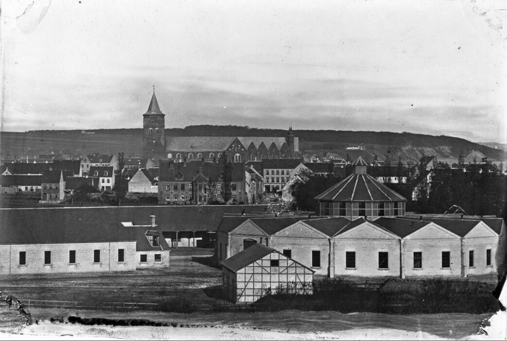 Udsigt over Århus fra terrænet syd for godsbanegården