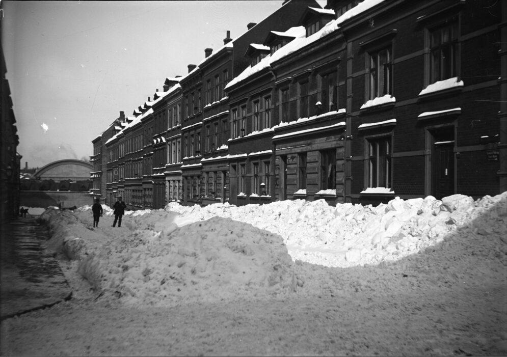 Snebunker i Steen Steensen Blichers Gade, set mod Jægergaardsgade og centralværkstedet